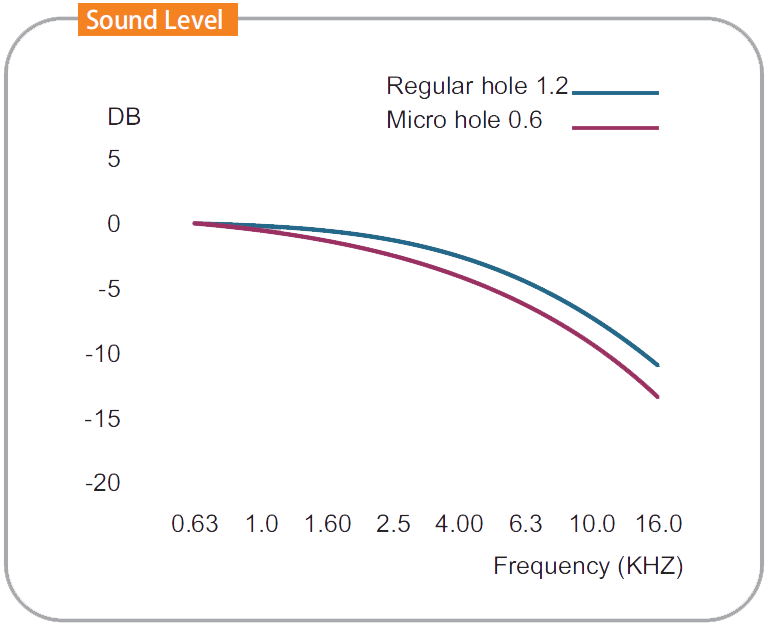 - Sound reduction : 1.2mm hole 4.5% 0.60 hole 1.7%